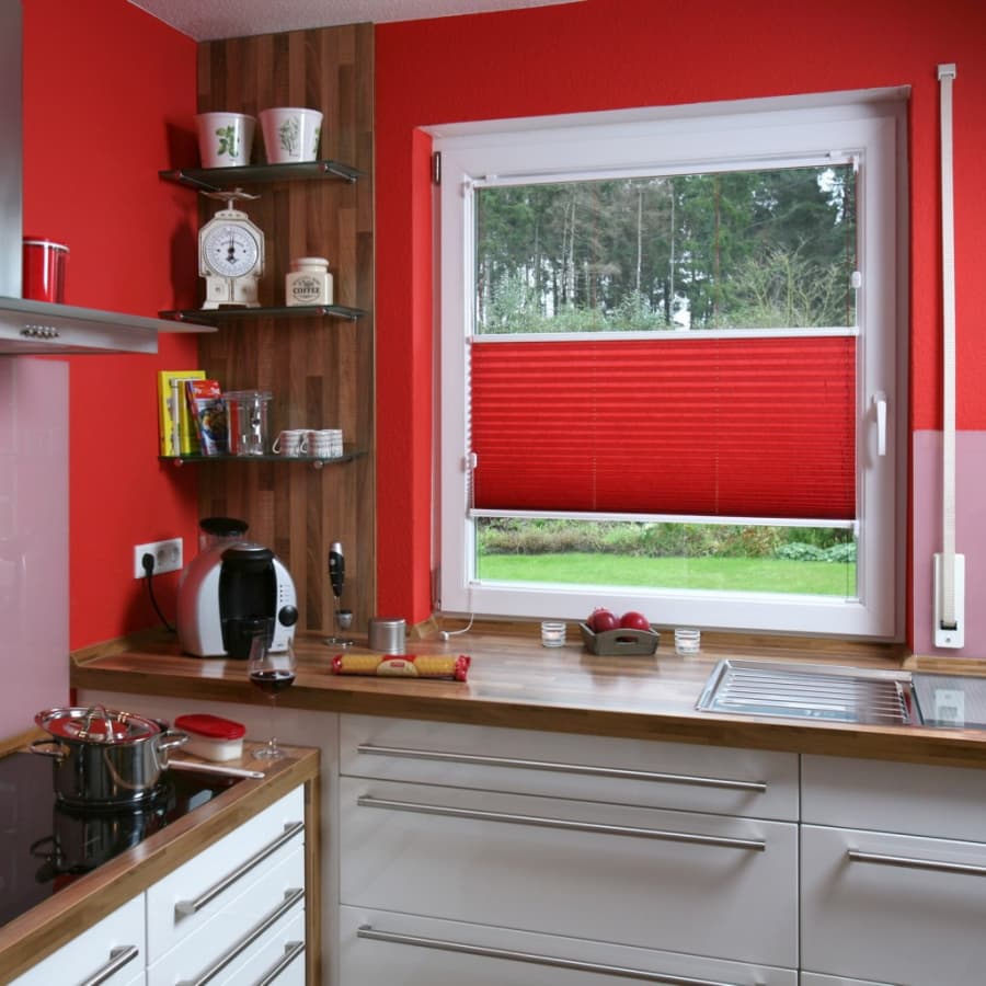 - Модерн, минимализм, хай-тек. Однотонные матовые оранжевые плиссе подчеркнут лаконичность и добавят динамики, станут ярким центральным элементом интерьера.